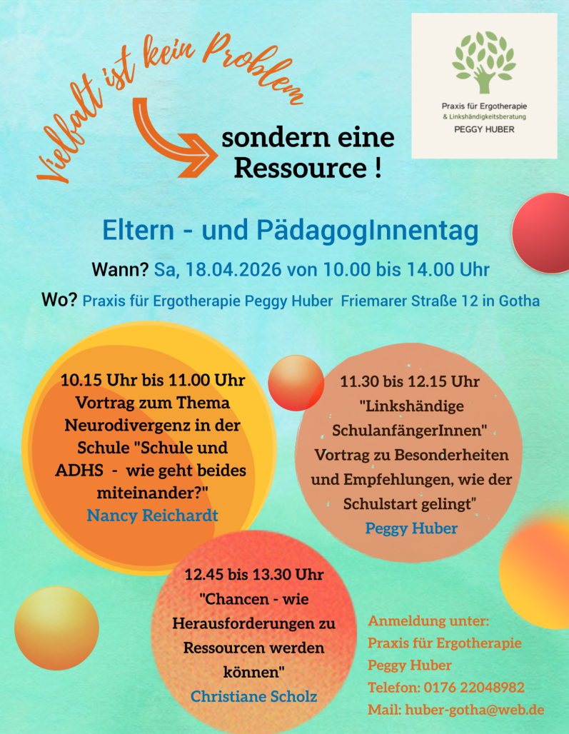 Ich veranstalte diesen Tag zusammen mit Nancy Reichardt (Ergotherapeutin und Lehrtherapeutin i.A.) sowie Christiane Scholz (Elternbegleiterin des Projektes ElternChanceN).